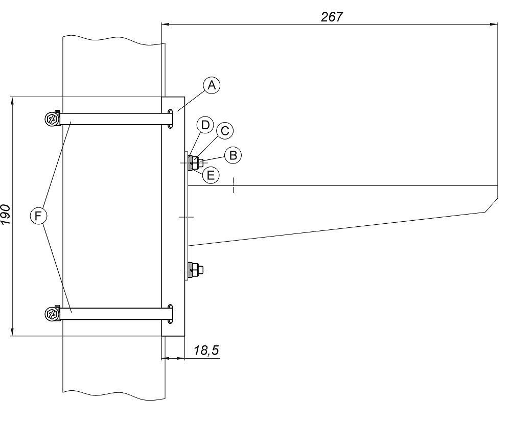 Кронштейн для крепления гермобоксов ТГБ-8Р Ех, ТГБ-8Г Ех, ТГБ-9Р, ТГБ-9 на квадратные и круглые опоры 115 ÷ 135 мм (другой размер – под заказ); Материал КС-4- нержавеющая кислотостойкая аустенитная сталь (12Х18Н10Т); Габаритные размеры (без хомутов и стяжек) 190х100х18.5мм