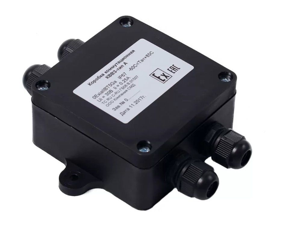 Коробки коммутационные КВВЗ-тип А предназначены для выполнения соединений (разветвлений) электрических цепей общего и специального назначения во взрывоопасных зонах.