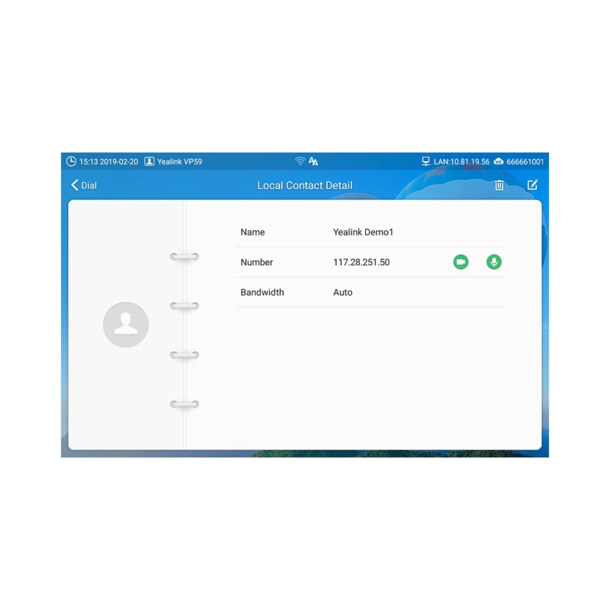 Лицензия для видеотелефона Yealink VP59 активирует функции персонального терминала ВКС. Дает возможность регистрации на сервере видеоконференцсвязи Yealink Meeting Server, а также облачных платформах Yealink Cloud Management Service/Zoom/Pexip/Starleaf/ Bluejeans/EasyMeet для доступа к их услугам.