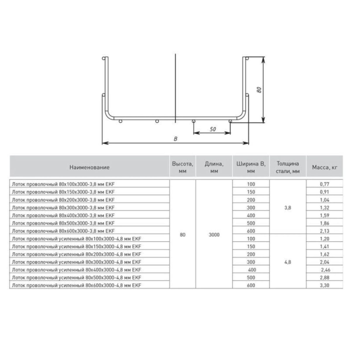 Лоток проволочный 80х300 L3000 3.8мм EKF LP80300-3.8