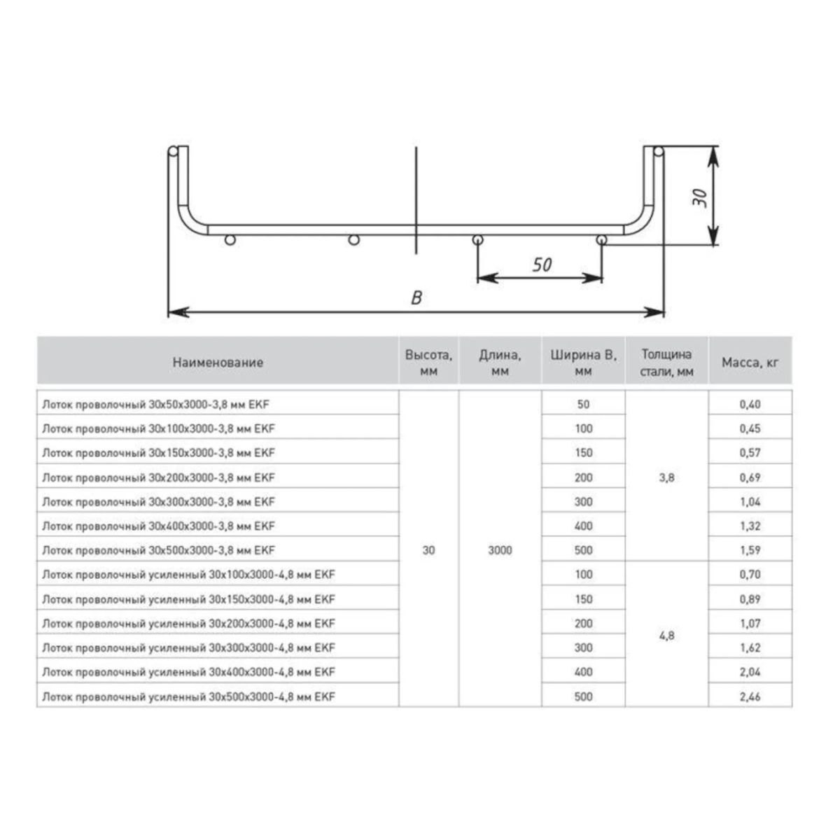 Лоток проволочный усиленный 30х400 L3000 4.8мм EKF LP30400-4.8