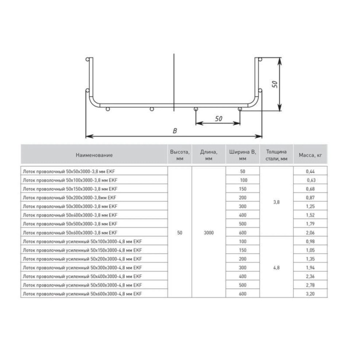 Лоток проволочный усиленный 50х600 L3000 4.8мм EKF LP50600-4.8