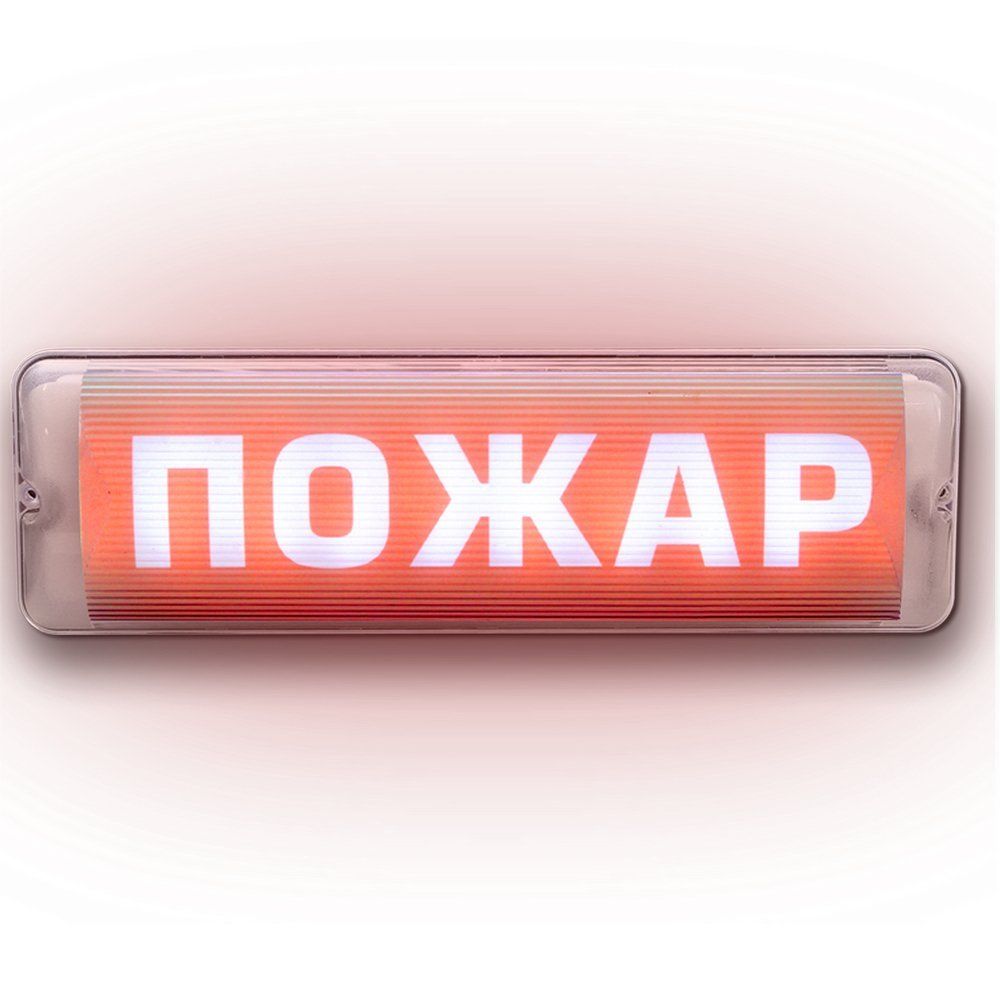 Оповещатель пожарный световой со скрытой надписью; U-пит.220 В, P-потр.1ВА; IP65, t-раб.-30...+55°С, 350х105х72мм, 0.54кг