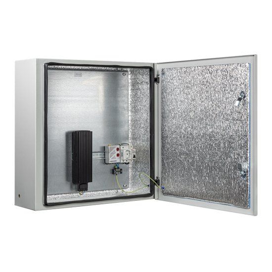 Шкаф климатической защиты с обогревом; с электронным гигростатом служащим для защиты оборудования; IP66, t-раб.-55...+50°С, габариты (внешние): 600х600х210мм(ШхВхГ), габариты (внутренние): 570х570х160мм(ШхВхГ). Цвет серый (RAL7035). Комплектация: утеплитель из порилекса НПЭ толщиной 10 мм, замок 2 шт, ключ 1 шт, монтажная плата 1шт,люк под гермовводы 1 шт, гермовводы 2шт, розетка 1 шт, автоматический выключатель 1шт, гигростат NT 78-M (электронный) 1шт, нагреватель мощностью в 150 Вт 1шт.