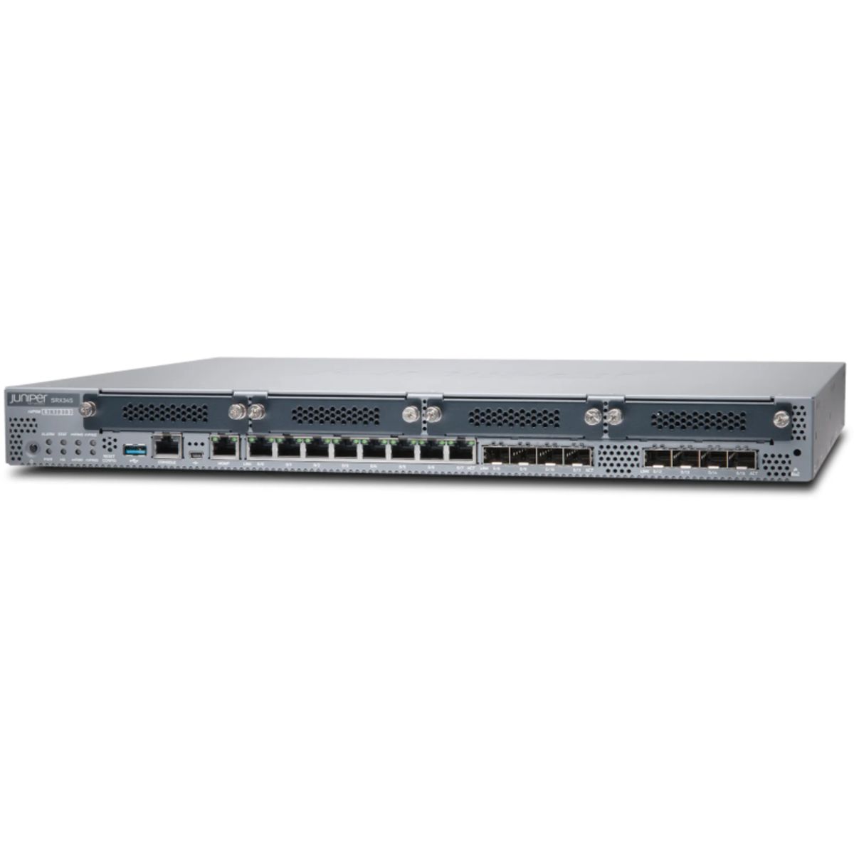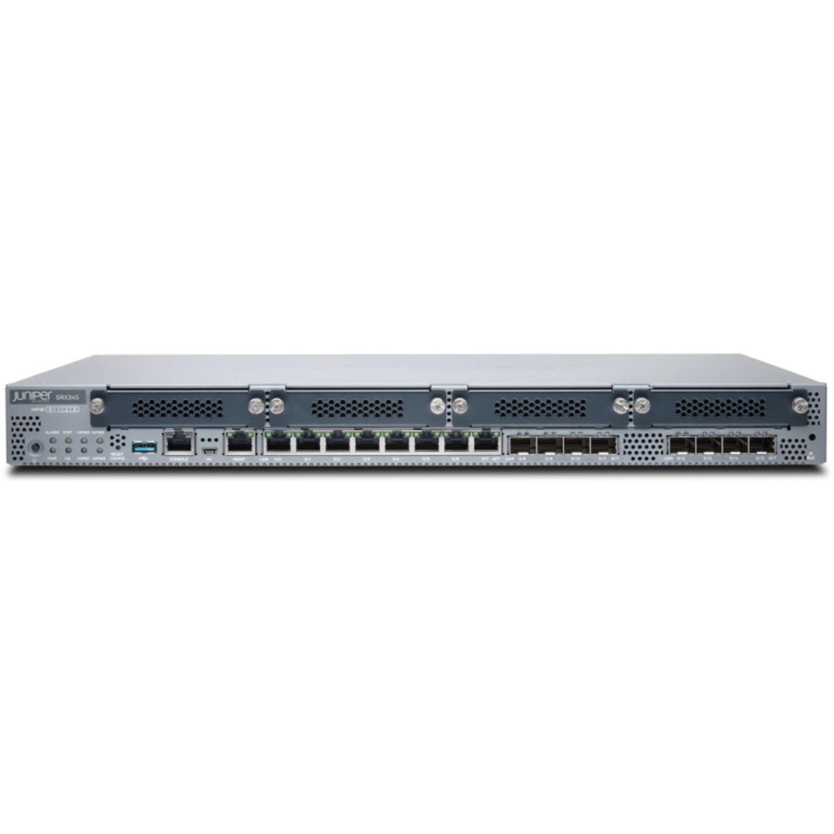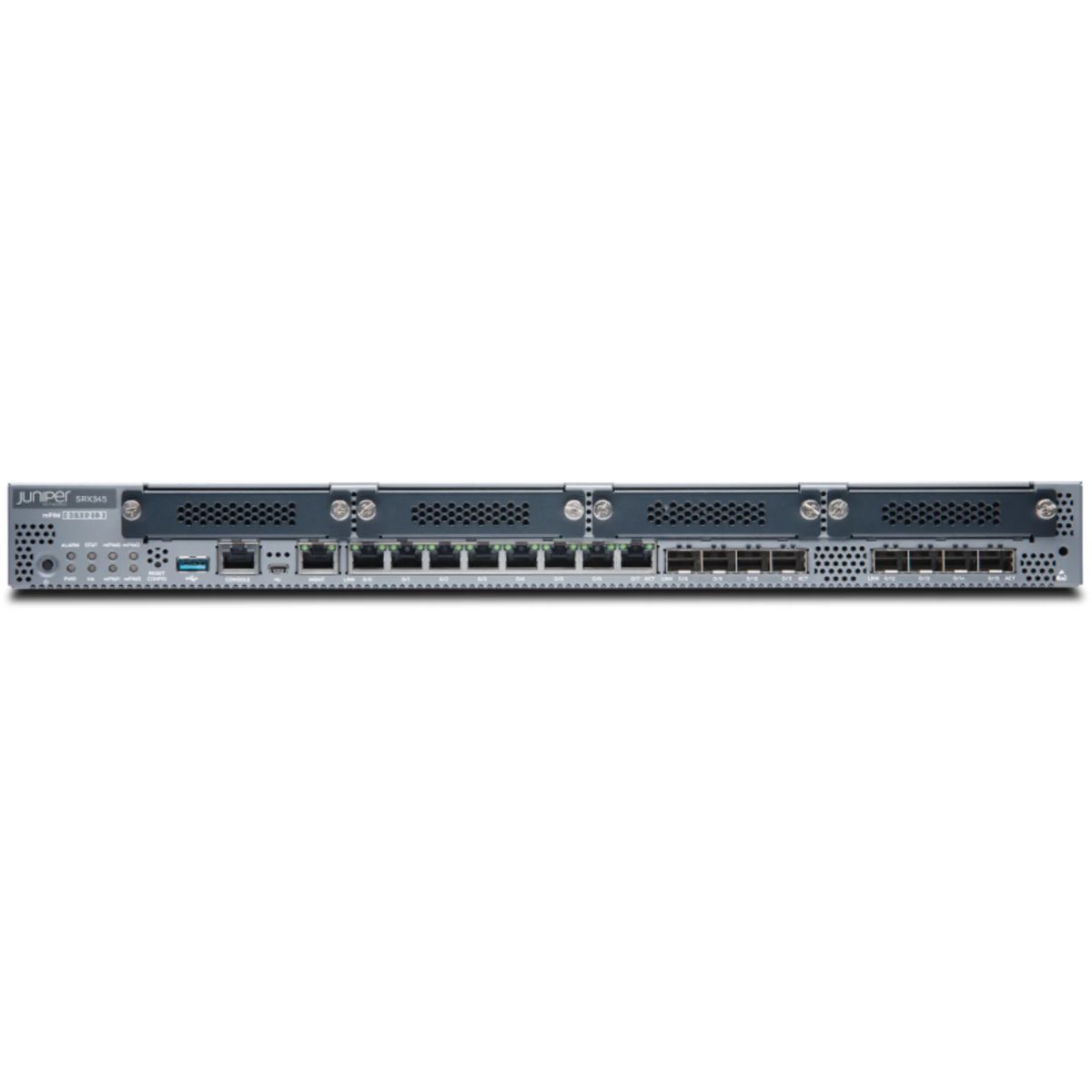 Межсетевой экран Juniper SRX345 16GbE, 4x MPIM slots, 4G RAM, 8G Flash, 1 блок питания и шнур питания, монтажный комплект RMK, Junos Software Base (firewall, NAT, IPSec, routing, MPLS and switching)