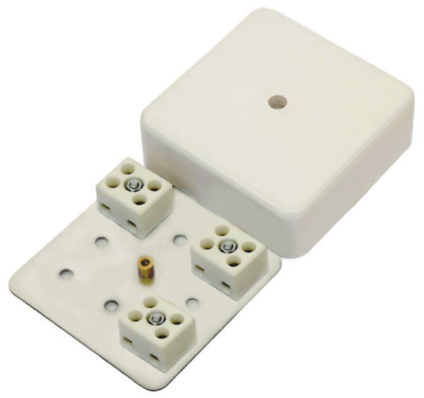 Коробка коммутационная огнестойкая, керамическая, 6 контактов, до 6 кв.мм, IP41, 75х75х28мм