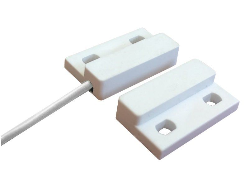 Магнитоконтактный для металлических поверхностей; контакты переключаются при тревоге; 10 мм (контакты не переключены), 6 мм (контакты переключены); U-коммут.60 В, I-коммут.250 мА, P-коммут.4 Вт; IP66/IP68, t-раб.-50…+70°С; 23х14х6 мм (геркон и магнит). Кабельный вывод 200 мм. Пластиковый корпус белого цвета. Вес 0.025 кг