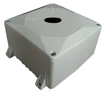 Монтажная коробка усиленная накладная с внешним креплением через 4 "проушины" и штатным отверстием D 30 мм в крышке, с 2-мя гермовводом ПКВ20х1,5 и двумя отверстиями с тыльной стороны для подключении кабеля D 6-14 мм, предназначена для наружной установки крупногабаритных камер видеонаблюдения, с возможностью установки платы питания и АКБ 12В 7А·ч; пластиковый корпус; масса 0.75кг; цвет белый, -70...+70°C; IP 66/67; 180х180х97мм