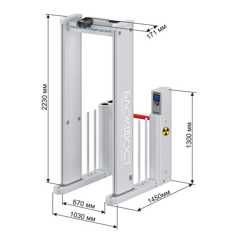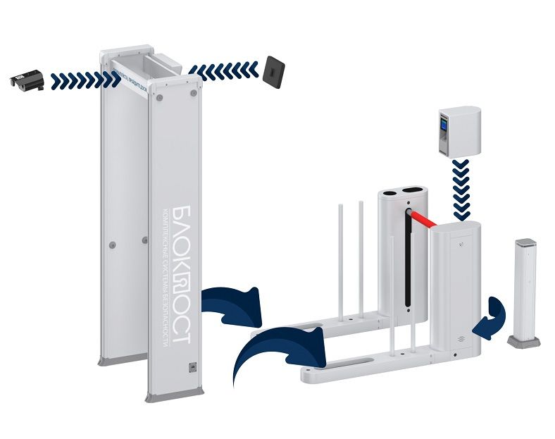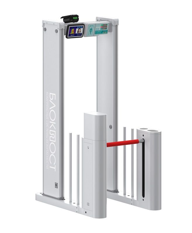 Модульная проходная Блокпост в стандартной комплектации представлена: металлодетектором БЛОКПОСТ PC Z 1800 M K с восемнадцатью зонами, высокоскоростным автоматическим турникетом БС 600, тепловизионной камерой БЛОКПОСТ Delta 100, автоматическим обнаружителем взрывчатки или веществ наркотического действия, имеет встроенный радиационный монитор и систему, осуществляющую автономный контроль за передвижением посетителей через турникет.