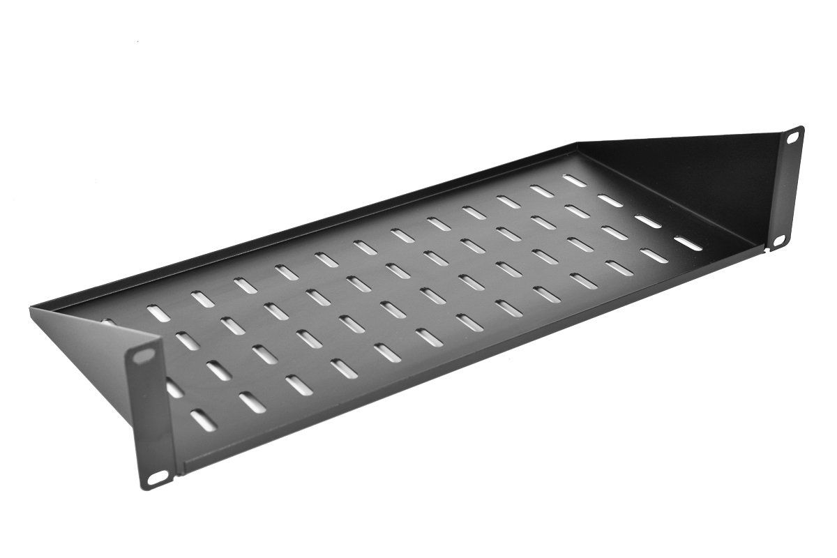 Полка перфорированная консольная, 2U, размеры (ВхШхГ) 89х483х400 мм, полезная глубина 395 мм, нагрузка до 15 кг, цвет черный RAL 9005