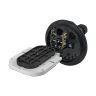 Способ герметизации корпуса с оголовником механический. Осуществляется при помощи эластичной кольцевой прокладки и армированного пластикового хомута с самозатягивающимся замком. Замок хомута сконструирован таким образом, что при открывании защелка трансформируется в рычаг, обеспечивающий легкое снятие хомута с муфты.
