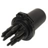 - 1 овальный, который позволяет осуществить ввод 2-х кабелей диаметром до 28 мм или 4-х кабелей диаметром от 5 до 10 мм при использовании круглых патрубков.