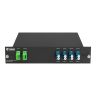 Пассивное устройство спектрального мультиплексирования-демультиплексирования для 4-х оптических CWDM каналов + однонаправленного TV канала на несущей 1550нм, работа по одному волокну. Исполнение в виде слотов, устанавливаемых в шасси позволяет более рационально использовать занимаемое пространство.