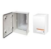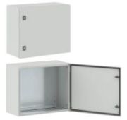 Корпус, монтажная плата, дверь, замок, фланец для ввода кабеля, монтажные аксессуары.