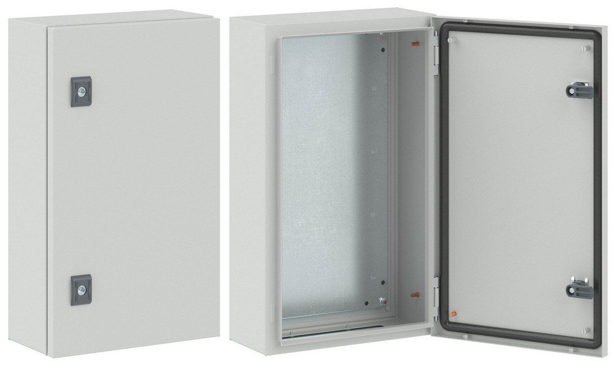 Сварные корпуса ST входят в линейку "RAM block". Эту серию отличает высокая ударопрочность (IK 10) и устойчивость к механическим повреждениям. Навесные корпуса ST со сплошной дверью используются для систем автоматизации технологических процессов. Корпуса обеспечивают размещенным внутри устройствам надежную защиту. Двери таких корпусов изготавливаются из металла толщиной 1,5 мм, а сам каркас – из металла толщиной 1,2 мм. На внутреннюю сторону двери наносится покрытие из вспененного полиуретана, который повышает качество герметизации. Загиб кромки корпуса предотвращает попадание во внутреннее пространство шкафа влаги и мусора, а производственные отверстия имеют специальные заглушки, благодаря чему достигается степень пыле- и влагозащиты корпуса – IP 65/IP 66. Трехступенчатая автоматизированная система окрашивания обеспечивает корпусам прочное покрытие, устойчивое к сколам и царапинам. По умолчанию в двери устанавливается замок под ключ с двойной бородкой 3 мм. Шкафы ST от ДКС отличаются сейсмоустойчивостью и вибростойкостью. Корпуса могут использоваться совместно с аксессуарами CE. Маркированная монтажная плата из оцинкованной стали толщиной 1,8 мм позволяет размещать внутри корпусов даже тяжелое оборудование. Габариты корпуса: высота - 500 мм, ширина - 300 мм, глубина - 150 мм.