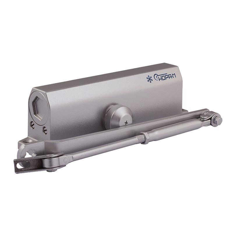 Доводчик с задержкой закрывания для дверей весом 60 - 110 кг. Класс доводчика EN3-5. двухскоростной, с рычажной тягой, установочный размер 230х19 мм, габариты 248х72х45 мм, -35...+60 °С, цвет - серый. Доводчик имеет дополнительную настройку, позволяющую регулировать скорость задержки закрывания двери (DA - Delay Action). Данная регулировка позволяет замедлить закрывание двери в диапазоне от 180 до 65 градусов.