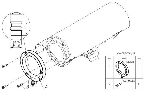 Насадка пневматическая НП-8 предназначена для предотвращения загрязнения смотрового стекла, за счет создания перед стеклом высокой скорости потока воздуха и избыточного давления. Устанавливается на термокожухи ТГБ-8Г Ex и на видеокамеры на базе данных термокожухов, материал сталь нержавеющая аустенитная.