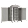 5) Ограждения для роторных турникетов. Полуростовые или полноростовые оградительные конструкции. Полуростовые варианты ограждают лопасти вращающихся турникетов, формируют проход. Полноростовые ограждения нужны для аварийного выхода или прохода с крупногабаритными вещами.