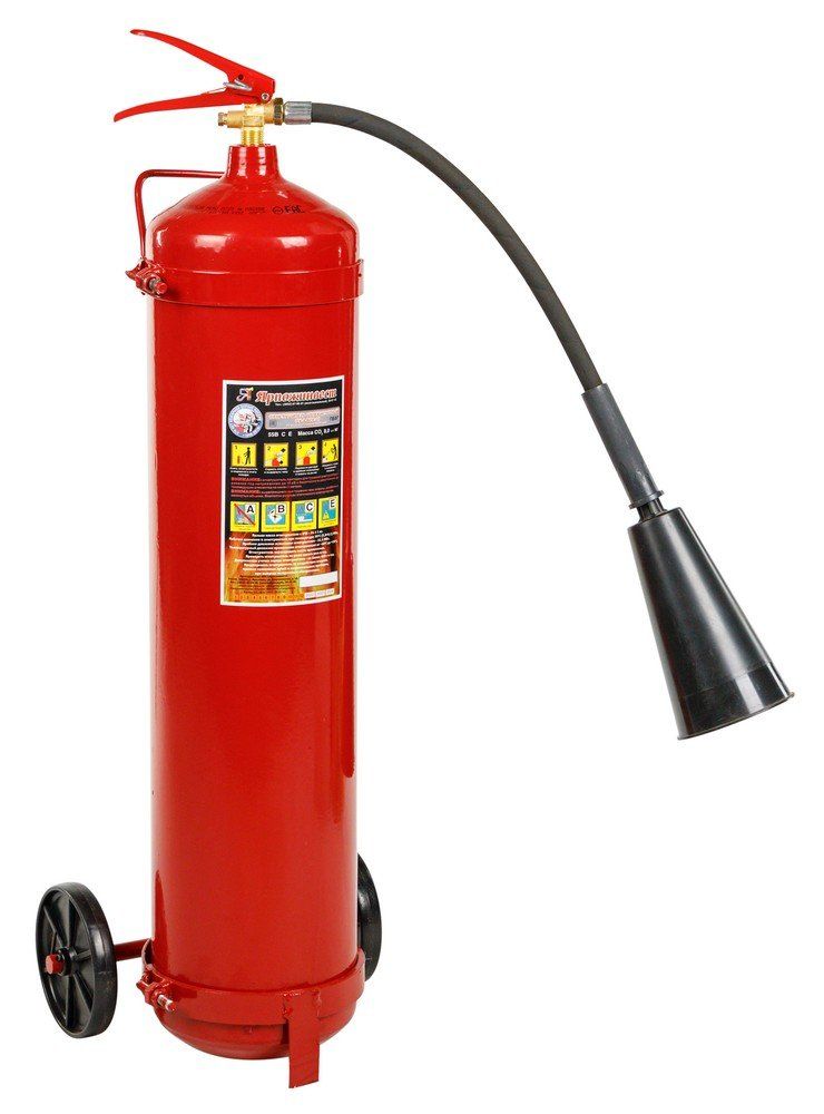 Огнетушитель углекислотный, огнетушащая способность 70В, С, Е; масса огнетушащего вещества 8+0.4 кг, продолжительность подачи ОТВ 10 сек, t-раб.-40…+50°C, габ.размеры D138х855 мм, вес 20 кг