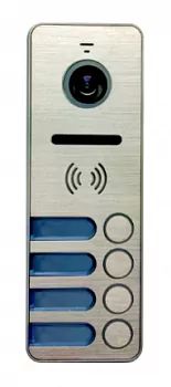 Цветная вызывная панель видеодомофона на 4 абонента, накладная. С возможностью открывания замка калитки и ворот. Металлический корпус. Монтажный уголок в комплекте. ИК-подсветка не видима глазу человека. Цветная CMOS AHD видеокамера с разрешением 1080p (с возможностью переключения в формат 720p или CVBS (PAL)). Высококачественный звук. Широкий угол обзора 110 град. Класс защиты IP65. Рабочая температура -30 +60С. Габариты 151 х 54,5 х 21,5 мм