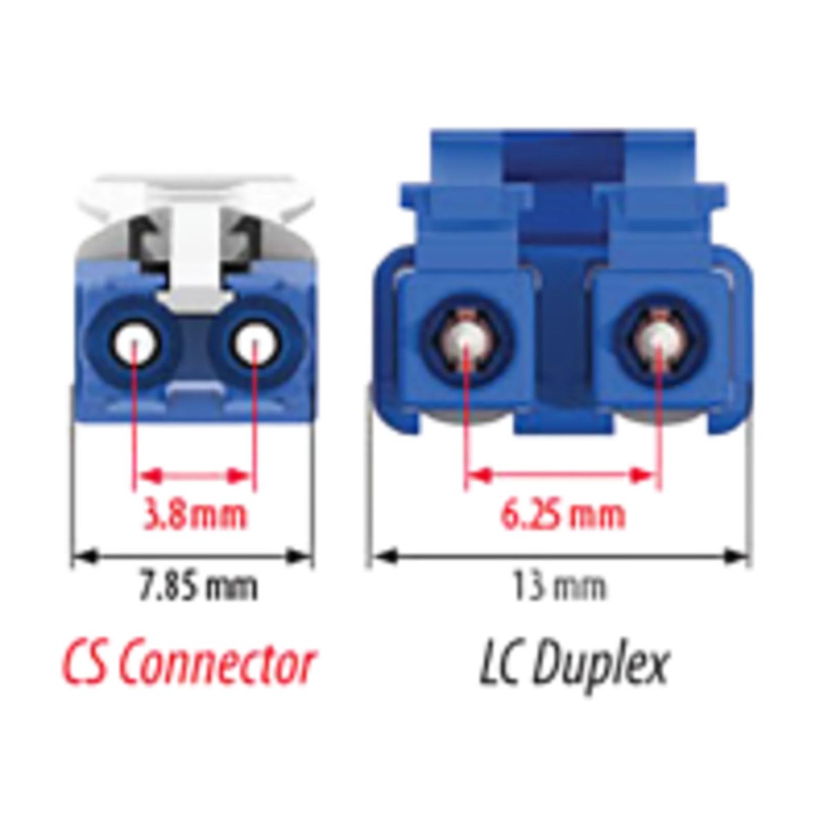 - CS адаптер имеет меньший размер и более высокую плотность по сравнению с дуплексным адаптером LC;