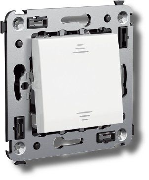 Переключатель 1-клавишный в стену серии Avanti, номинальное напряжение 210...230 В, номинальный ток 16 А, светодиодная (LED) подсветка, 70,9х70,9х43,7 мм, не содержит галогенов, цвет белый