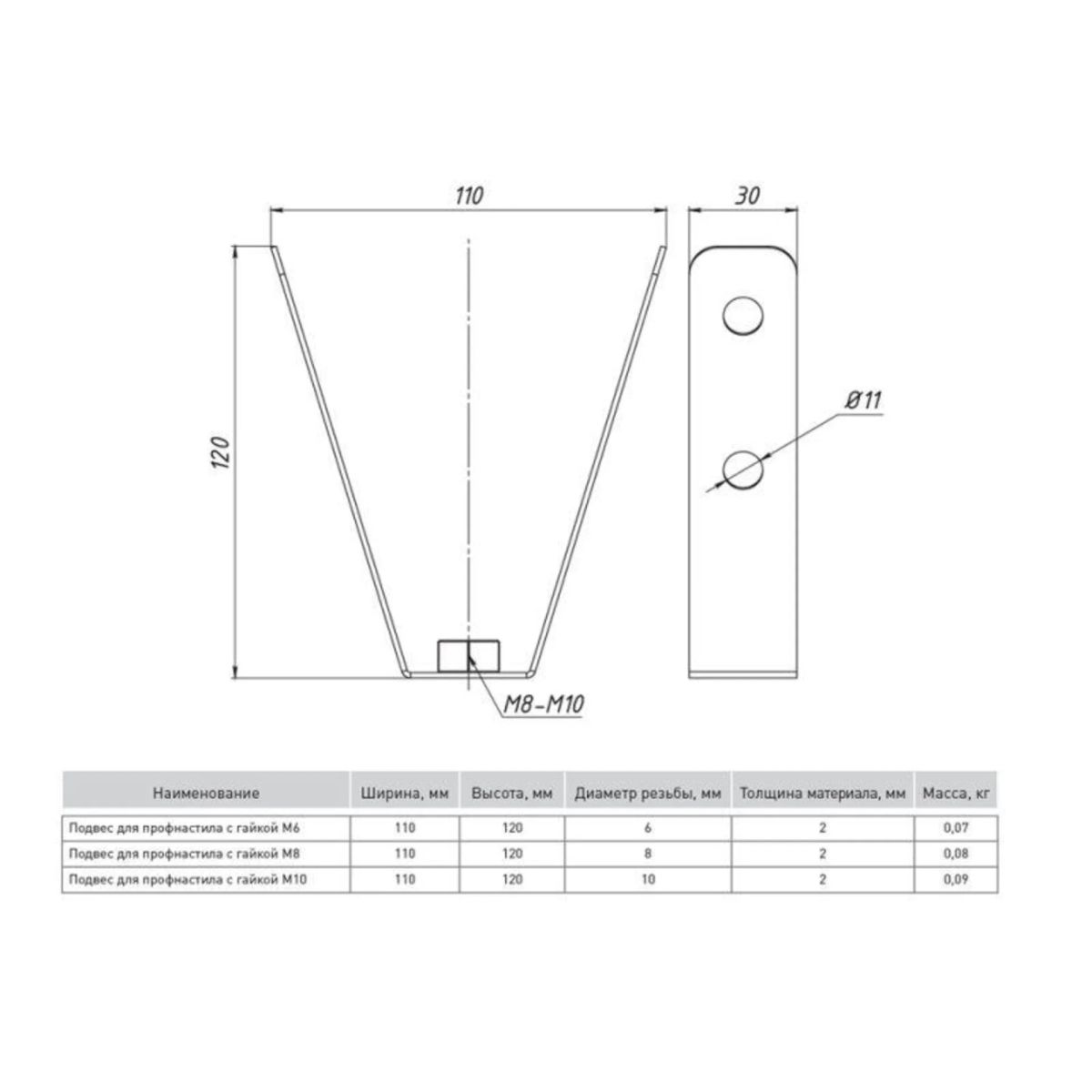 Подвес для профнастила с гайкой М10 EKF kp10120