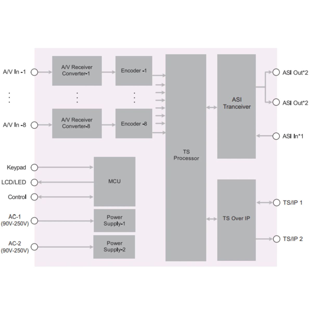 Профессиональный 8ми канальный MPEG-4 кодер PBI DXP-8000EC-82H
