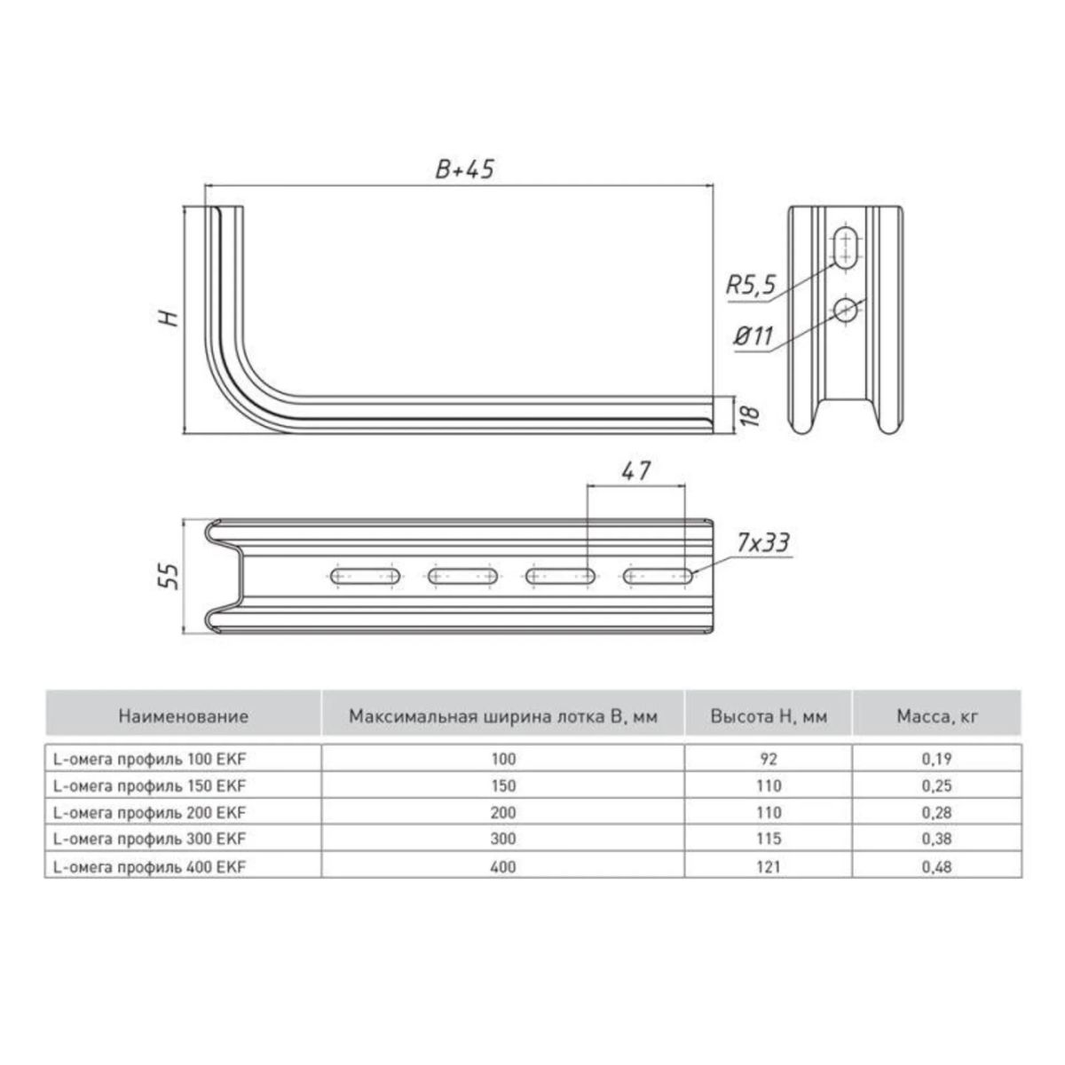 Профиль Омега L-образный осн.200 1.5мм EKF OMPL200
