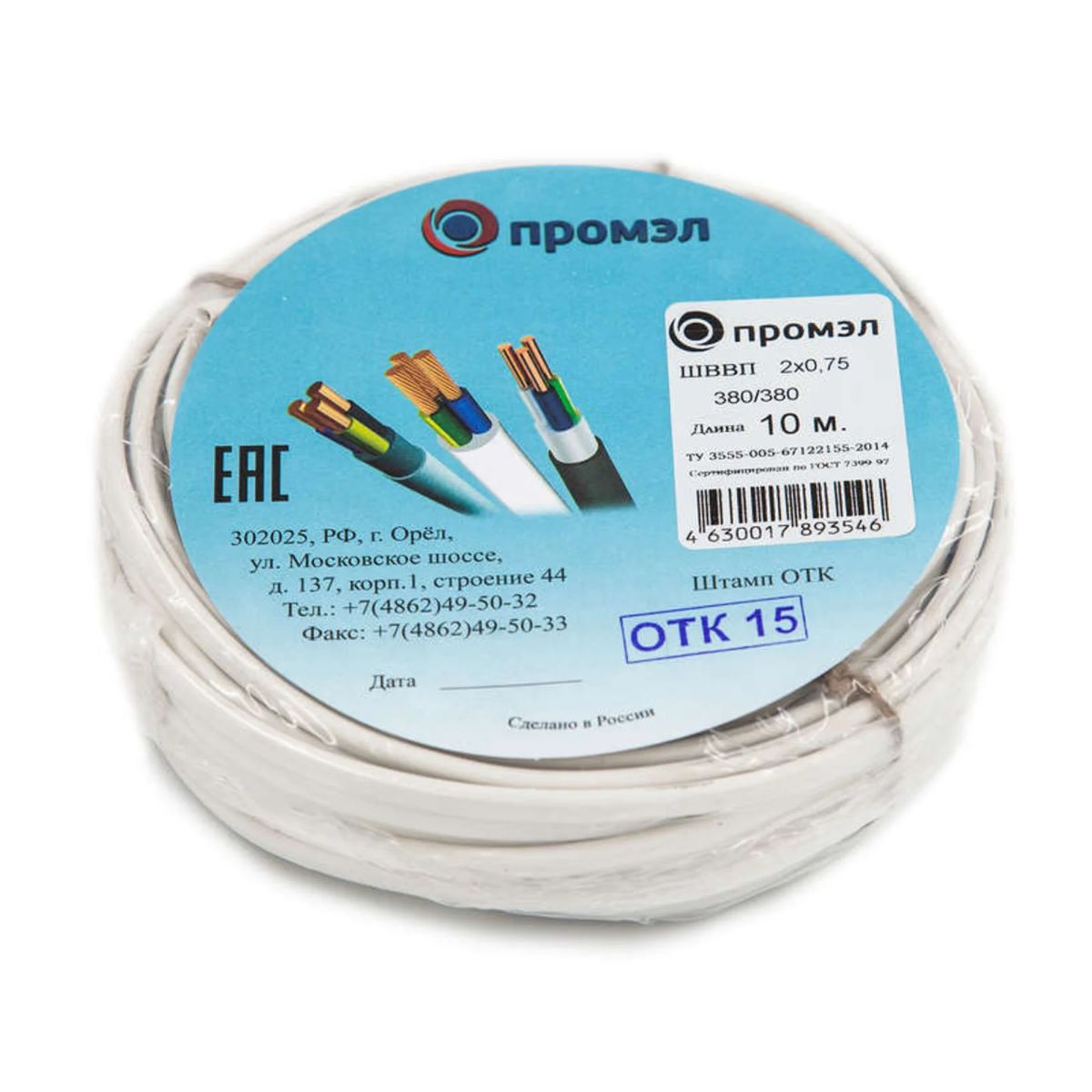 Провод ШВВП 2х0.75 Б 380В (бухта 10м) (шт) ПромЭл 13321730