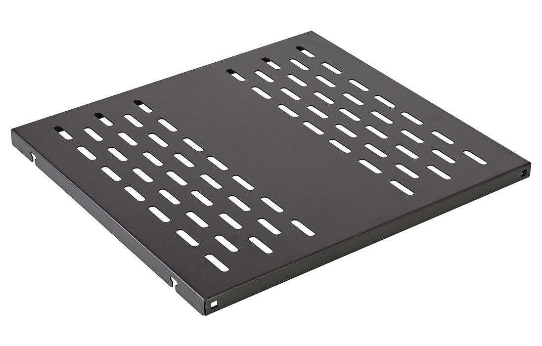 Полка стационарная перфорированная, усиленная, нагрузка до 150кг, глубина 650мм, цвет черный.