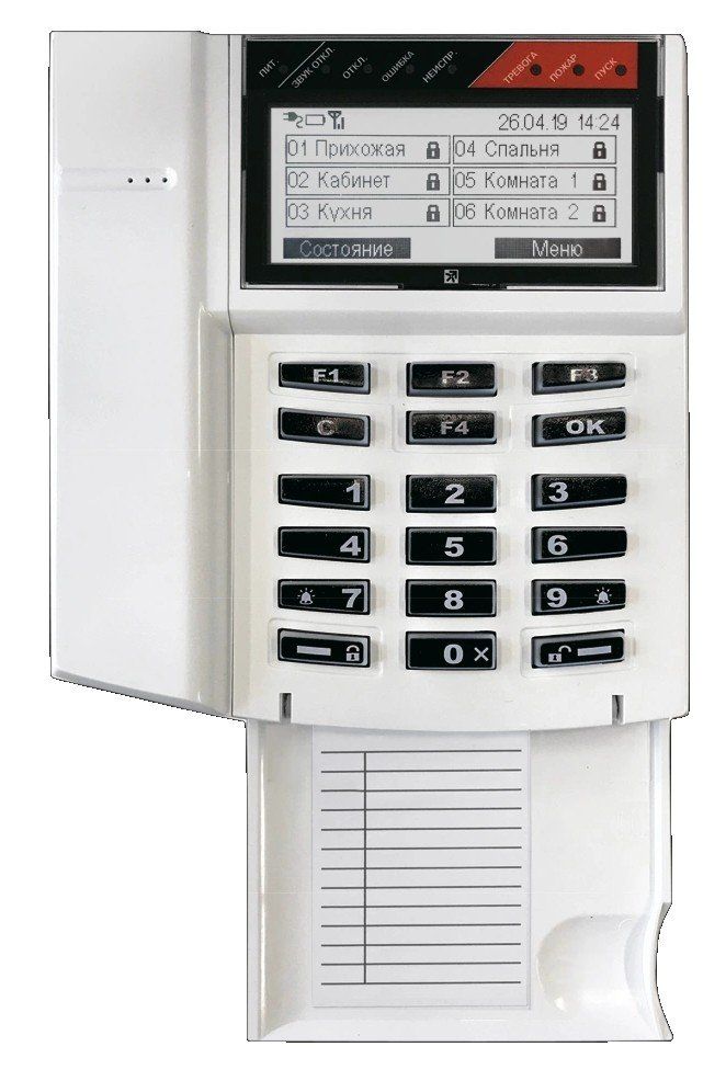 Радиоканальный пульт управления, индикации и контроля сегментом для работы с контроллерами Панель-1-ПРО и Панель-2-ПРО, ретрансляция событий от дочерних устройств; ЖК-дисплей с трехцветной подсветкой на выбор (белый, зеленый, синий); встроенный звук. сигнализатор; дальность радиоканала до 1200 м, f-раб. 868 МГц, U-пит.9…28 В, I-потр.100 мА; IP41, t-раб.-20…+55°C, 131х145х30 мм