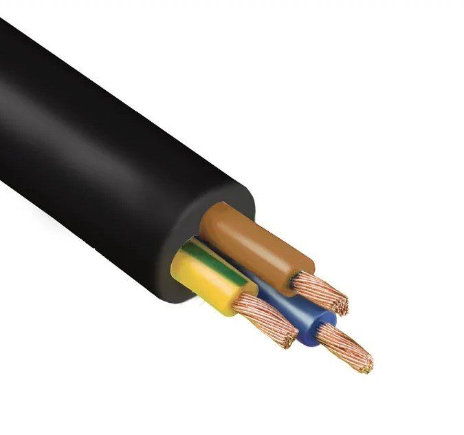 Кабель силовой многопроволочный, гибкий, с ПВХ оболочкой круглой формы, 3 скрученные медные жилы в ПВХ изоляции сечением 1.5 мм²; U-ном. 380 В; t-раб.-25...+40°С. Цвет черный, бухта 150 м