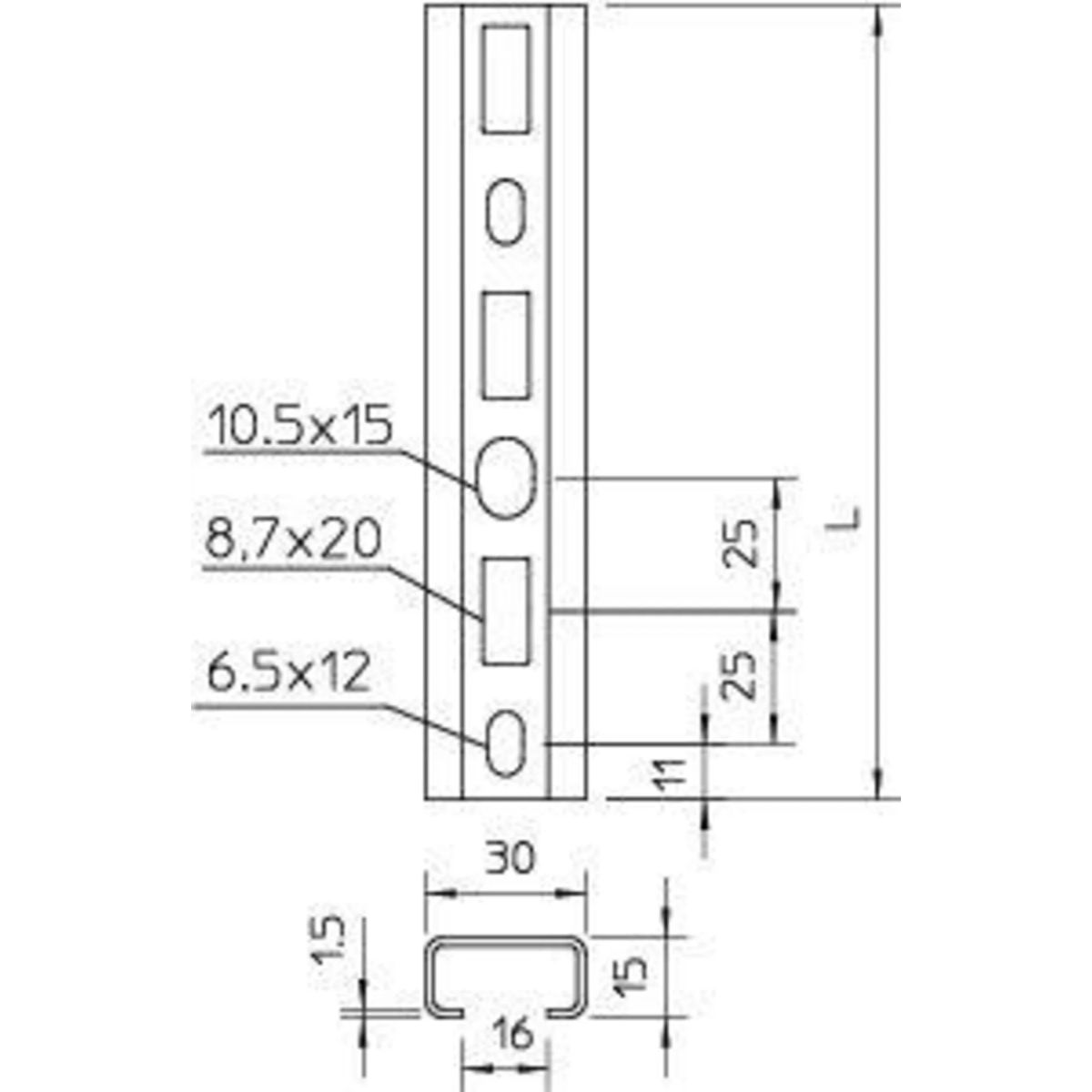 Рейка профильная 700х30х15 C30 L 700 FT OBO 1109839