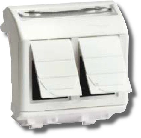 Розетка телефонная RJ-11 (6Р6С) серии "BRAVA" с 2-мя разъёмами, 2 модуля, Hyperline, габаритные размеры 43х43 мм, цвет белый