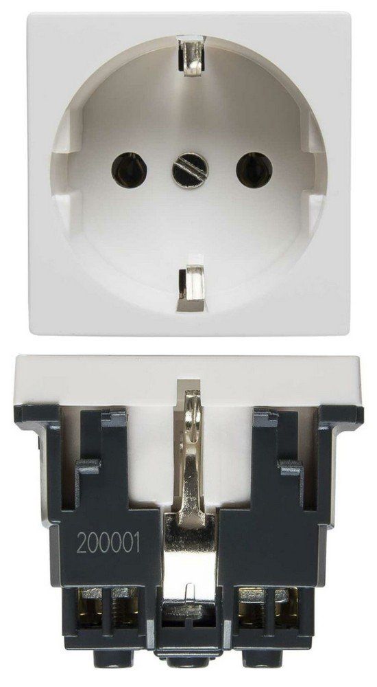 Розетка электрическая с заземлением (2К+З), U-ном. 220 В, I-ном. 16 А, размер 45х45 мм - 2 модуля Modul45/"Mosaic", белая