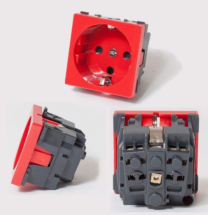 Розетка электрическая с заземлением (2К+З), U-ном. 220 В, I-ном. 16 А, размер 45х45 мм - 2 модуля Modul45/"Mosaic", красная