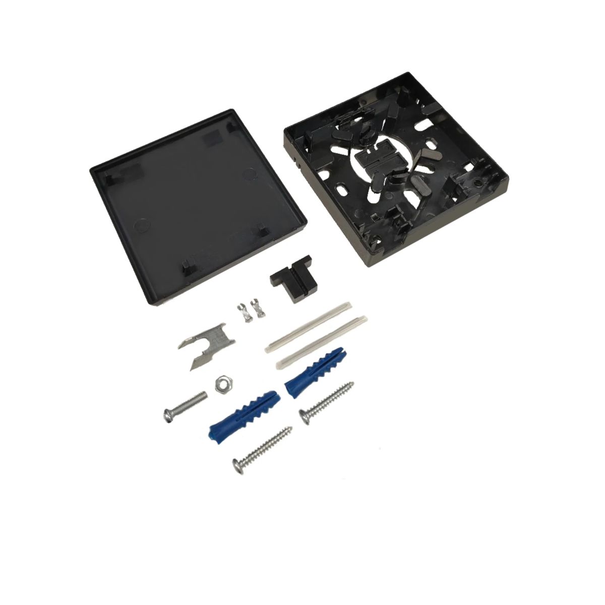 Конструкция розетки позволяет устанавливать один оптический адаптер типа SC/LCDuplex и размещать розетку на стене или другой поверхности.