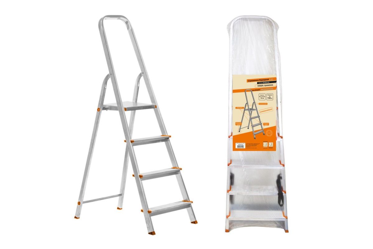 Стремянка алюминиевая, 4 ступени, усиленный профиль h=780 мм.