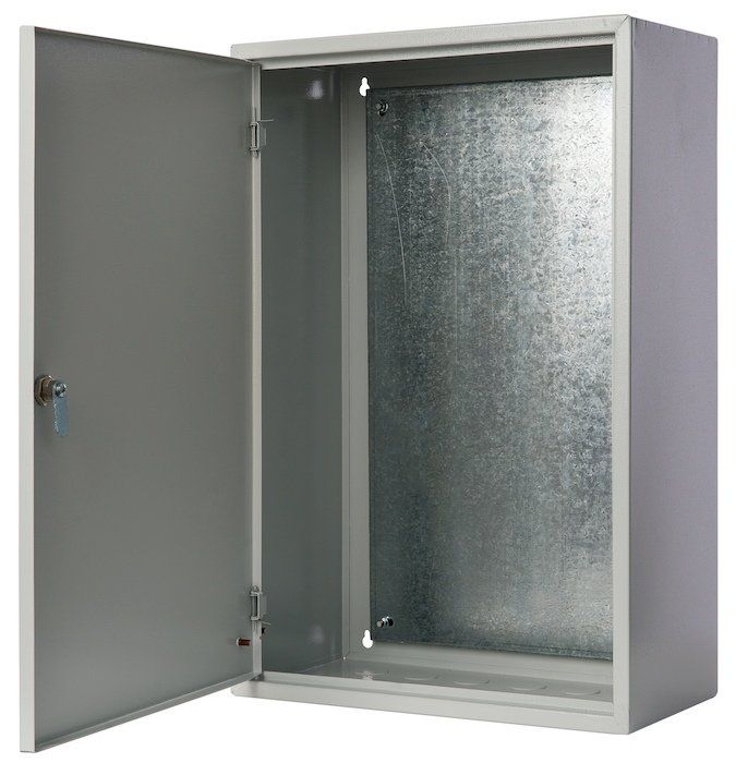 Корпус металлический с монтажной платой 600х400х210 мм, количество вводов 3 шт Ø36 мм (сверху и снизу), IP31, цвет светло-серый (RAL 7035)