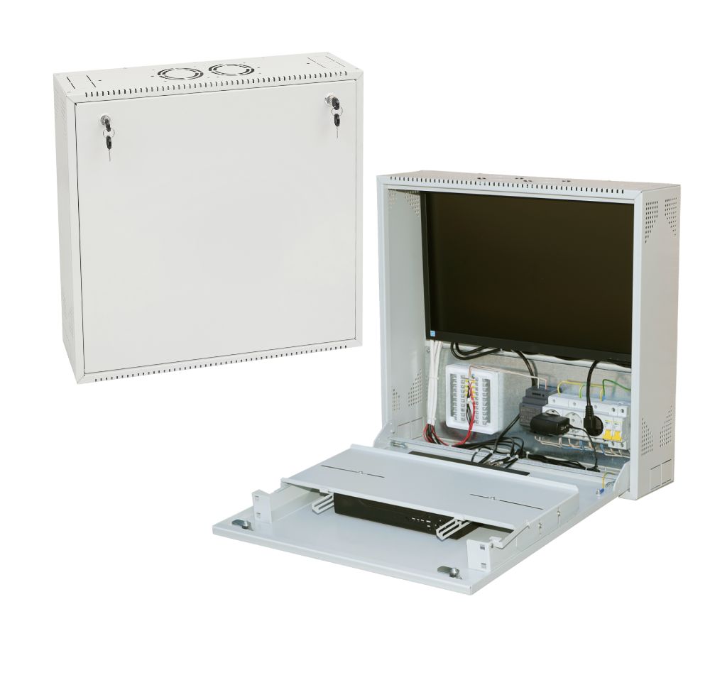 Предназначен для настенного размещения компонентов системы видеонаблюдения: монитора, видеорегистратора, блока питания, а также другого сетевого и электронного оборудования, металл 1мм; вес 10,5 кг, 560х540х150 мм.