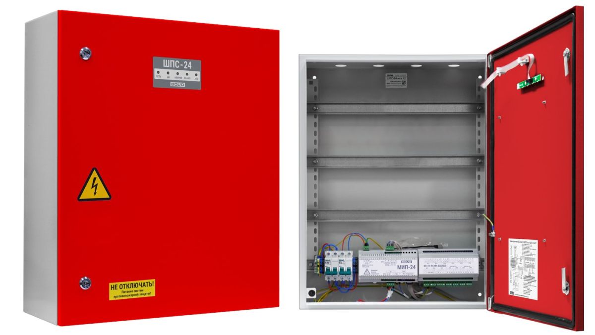Шкаф для монтажа средств пожарной автоматики с креплением на DIN-рейку; 2 ввода питания; U-вх.150…253 В, U-вых.27.2±6 В, I-ном.2 А, I-макс.2.2 А, под два АКБ 12 В 17 А·ч; встроенный блок коммутации БК-24-RS485 (две изолированные линии интерфейса RS-485 для подключения к компонентам ППКП и ППКУП расположенным за пределами ШПС, одна линия RS-485 для подключения компонентов ППКП внутри ШПС; 7 выходов для подключения к приборам внутреннего интерфейса RS-485; 7 выходных каналов 24 В с индивидуальной защитой); IP54, t-раб.-10…+40°С, 650х500х220 мм. Красного цвета. Возможность установки монтажного комплекта МК-1.