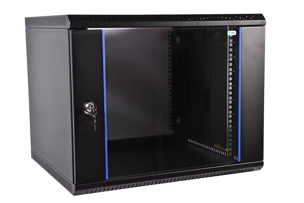 Шкаф телекоммуникационный 19" настенный; разборный 6U, полезная глубина 600мм, распределенная нагрузка до 65кг, дверь стекло, съемные боковые стенки с замком, цвет чёрный, 342х600х650 мм.