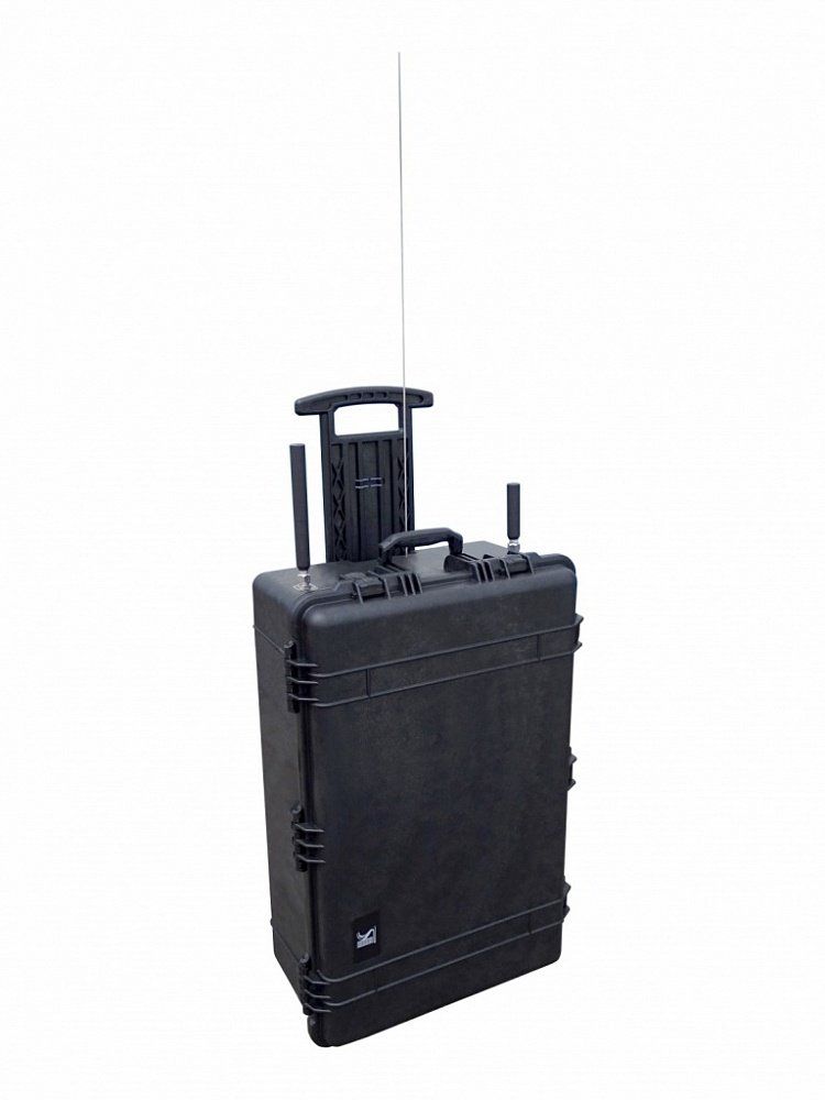 Данное устройство противодействует радиосигналам, которые можно направить в рабочее состояние РВУ. Изделие мобильное, можно переносить, имеет удобную выдвижную ручку (см. рис). Выполнено в корпусе из пластика.