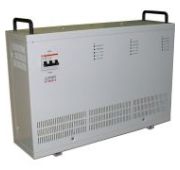 Стабилизатор напряжения трехфазный релейный (ступенчатый принцип стабилизации), чистая синусоида; P-вых.18 кВА (сумм.); P-нагр.6 кВА(фазная), U-вх.380 В, U-вых.380 В; IP30, t-раб.+1…+40°C. В комплекте три блока стабилизации и блок коммутации.