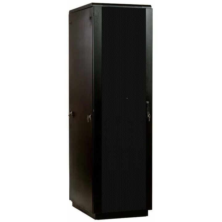 Шкаф телекоммуникационный 19'' напольный , 42U, передняя и задняя перфорированные двери, ручка с замком, распределенная нагрузка 710 кг, полезная глубина 515 мм, цвет черный, разобранный, 1987x600х600 мм.