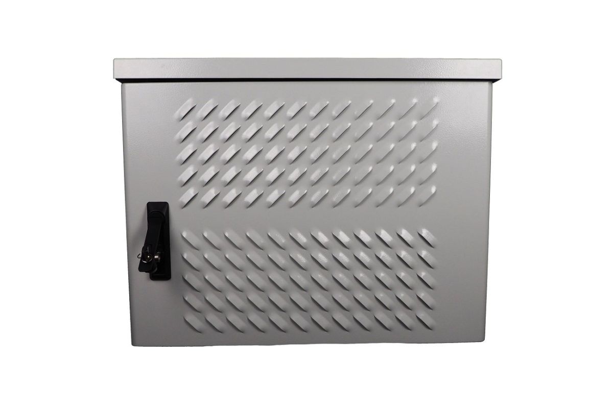 Всепогодный шкаф 19" навесной с системой обогрева, 6U, 450x620x330 мм; материал сталь 2мм, передняя дверь вентилируемая, цвет серый, неразборный, допустимая нагрузка до 150 кг, вес 58 кг, IP65, -50…+45°C. Установленное оборудование: Нагреватель полупроводниковый, Разрядник перенапряжения, Индикатор напряжения, Гигростат, Термостат, Выключатель дифференциальный защитный, Выключатель автоматический, Датчик открытия двери, Розетка на DIN-рейку, Шина заземления.