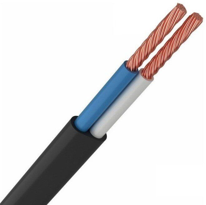 Шнур с многопроволочными 2 жилами с поливинилхлоридной изоляцией, 3,1х5,1 мм, сечение жил = 0,5 кв. мм. Оболочка ПВХ пластикат черного цвета. Температура окружающей среды при эксплуатации провода: -25…+40°C. Предельная длительно допустимая рабочая температура жил: +70°C.