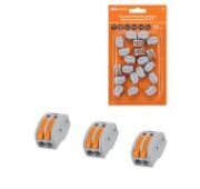 Соединительная клемма 2-х контактная серого цвета с нажимным рычагом до 2 одножильных проводников сечением от 0,1 мм² до 2,5 мм² и многожильных медных проводников сечением от 0,1 мм² до 4 мм², U-мах. 380 В, I-ном. 32 А. t-раб. -25…+75°С, упак. 50 шт.