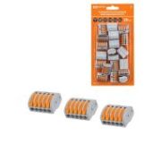 Соединительная клемма 3-х контактная серого цвета с нажимным рычагом до 3 одножильных проводников сечением от 0,1 мм² до 2,5 мм² и многожильных медных проводников сечением от 0,1 мм² до 4 мм², U-мах. 380 В, I-ном. 32 А. t-раб. -25…+75°С, упак. 20 шт.